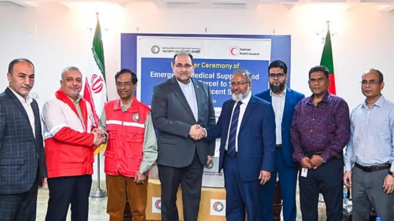 যুদ্ধবিধ্বস্ত ইরানে জরুরি ওষুধ ও চিকিৎসাসামগ্রী পাঠাচ্ছে বাংলাদেশ। ইতোমধ্যে ঢাকায় ইরানের রাষ্ট্রদূত জলিল রাহিমি জাহানাবাদির কাছে এই সহায়তা সামগ্রী হস্তান্তর করা হয়েছে। পররাষ্ট্র মন্ত্রণালয়ের এক সংবাদ বিজ্ঞপ্তিতে আজ বৃহস্পতিবার (২৩ এপ্রিল) এ কথা জানানো হয়েছে। এতে বলা হয়েছে, প্রধানমন্ত্রী তারেক রহমানের সিদ্ধান্ত অনুযায়ী এই সহায়তা দেওয়া হয়েছে। ইরানকে দেওয়া এই সহায়তা বাংলাদেশ রেড ক্রিসেন্ট সোসাইটির মাধ্যমে পাঠানো হচ্ছে।